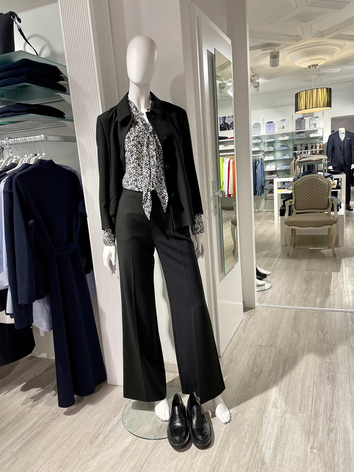 - Anzug von Joop! mit besonderem schwarz-weiß schimmerndem Stoff – feminin, modern und elegant.