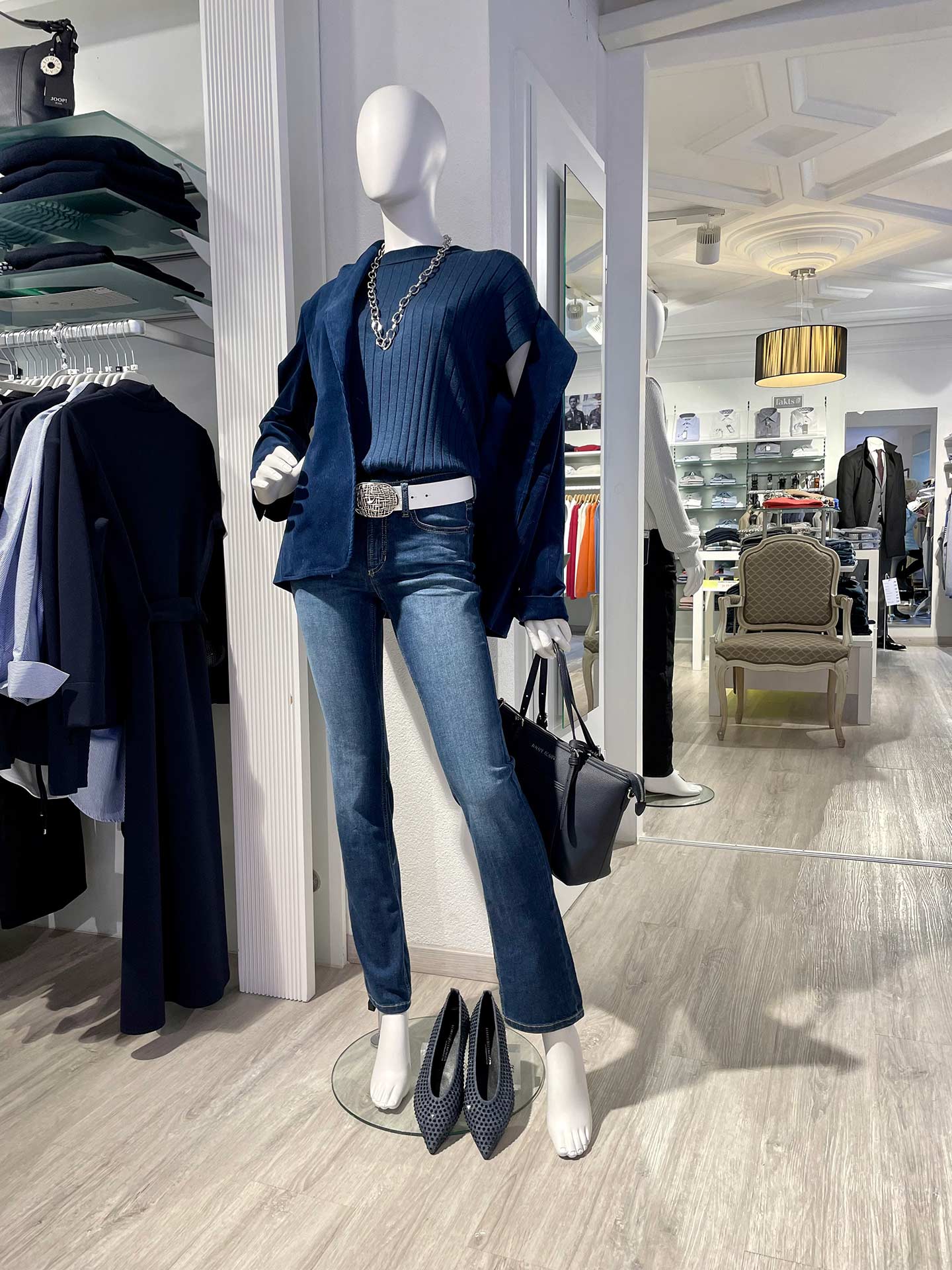 - Tasche von Joop!, passend abgestimmt auf die Blautöne des Outfits.